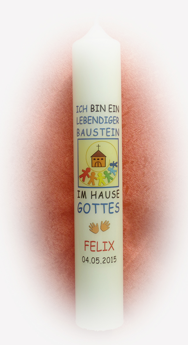 Kommunionkerze Motiv “Lebendige Bausteine” ::