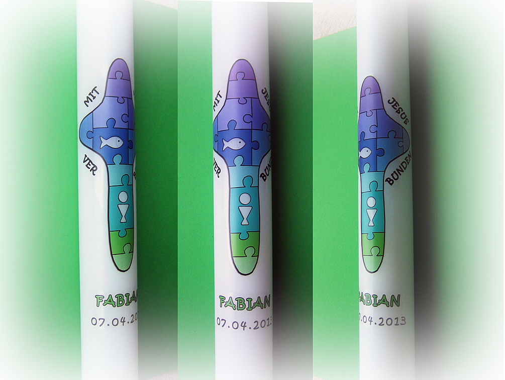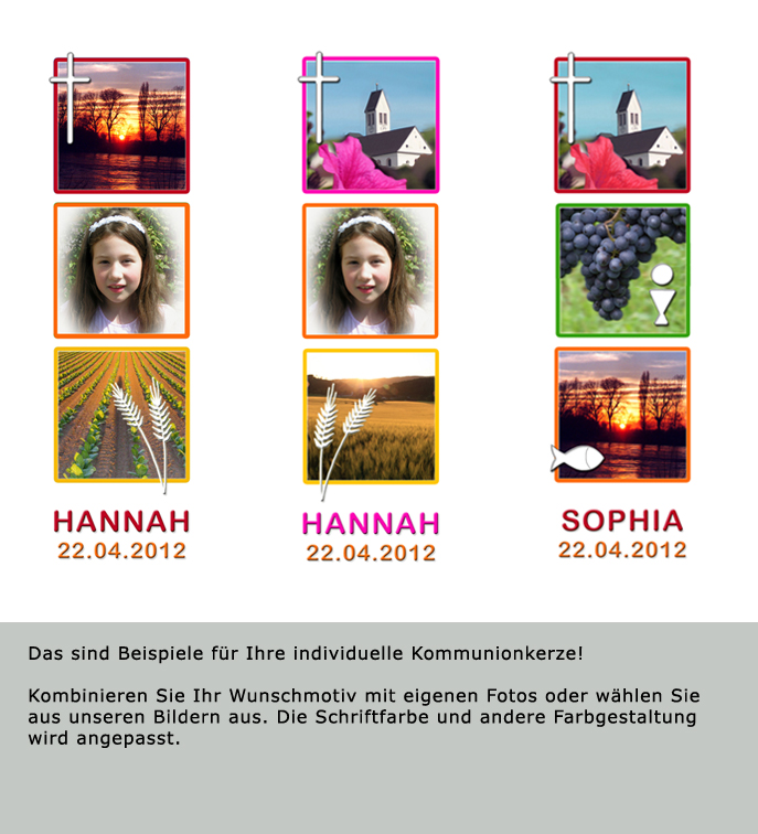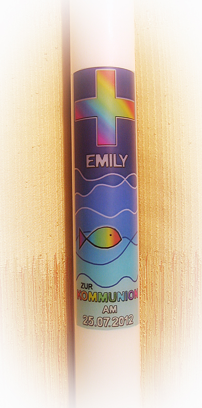 wäre es mit einem eigenen Bild auf der Kommunionkerze? Kein