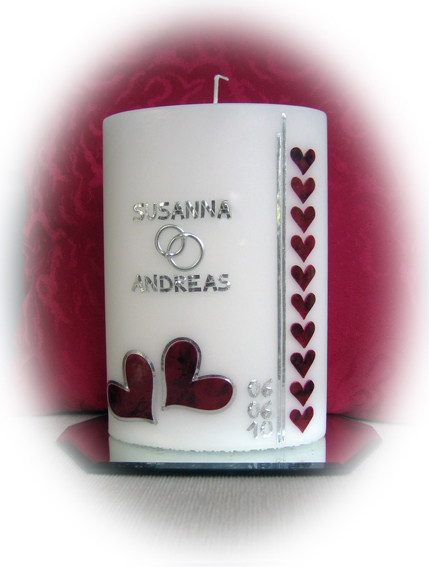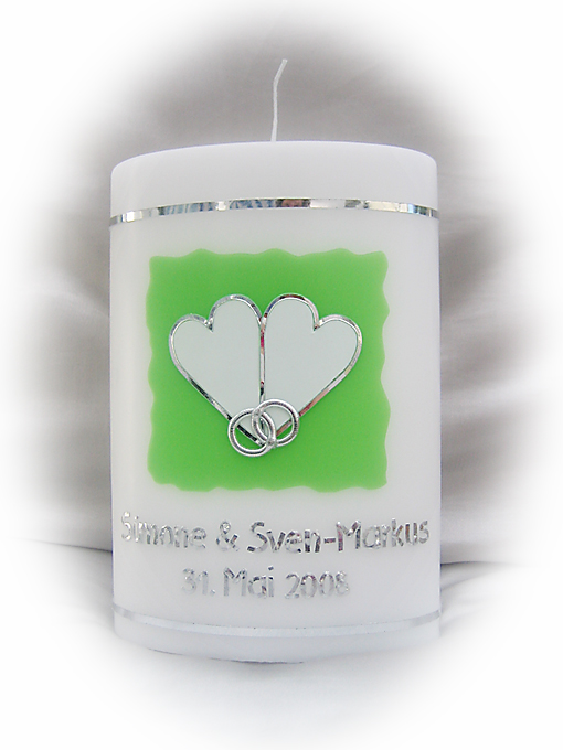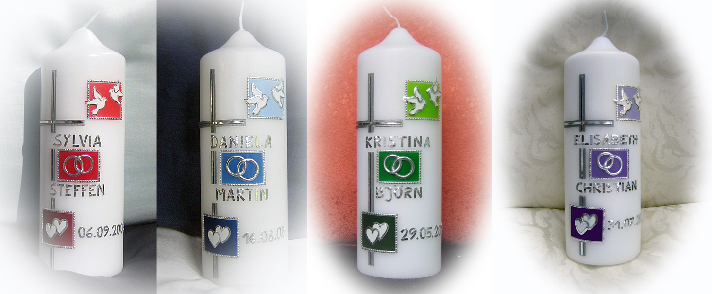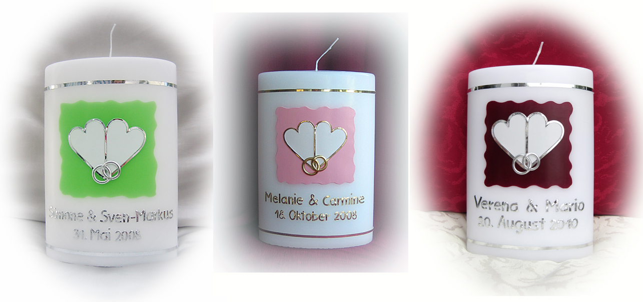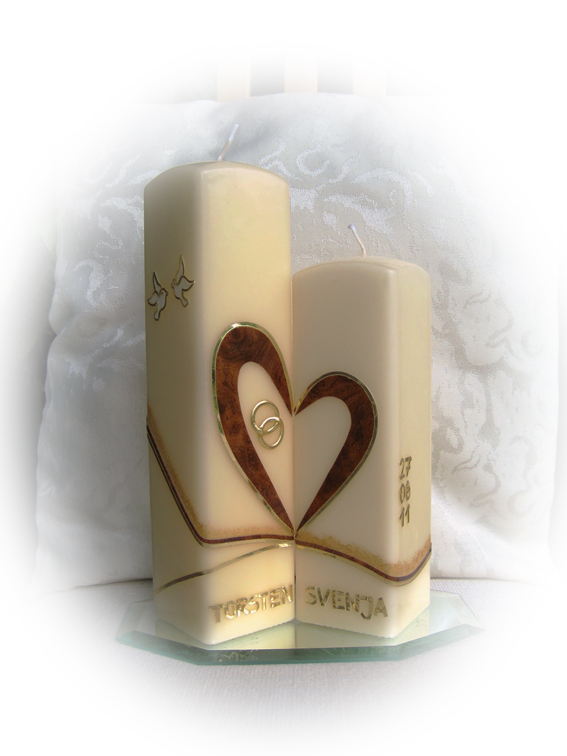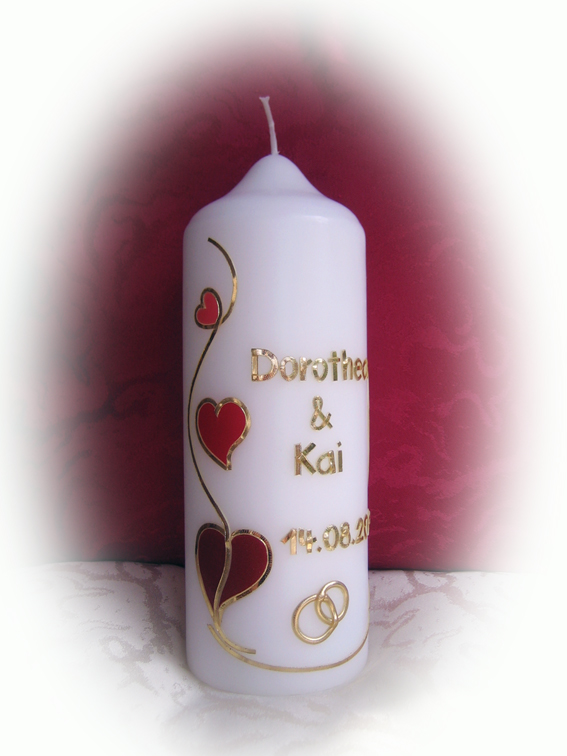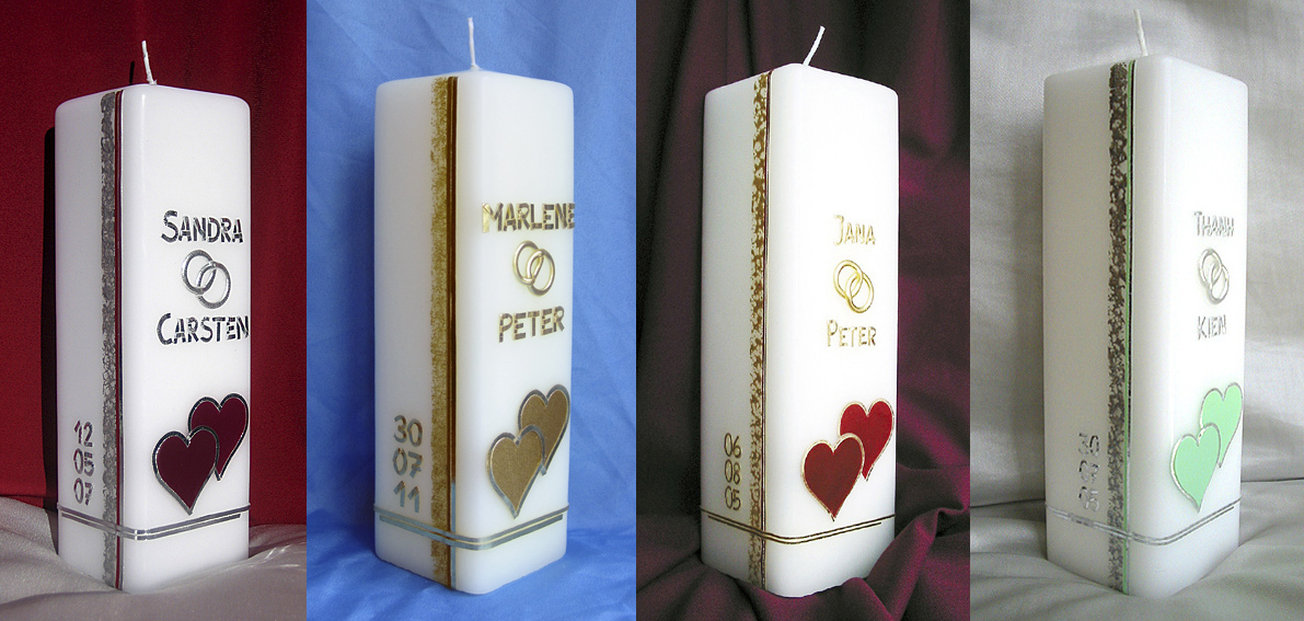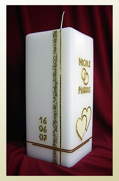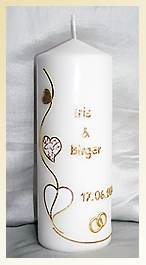 (mit gold auf vanillefarbenen Kerzen), ohne Trauspruch.