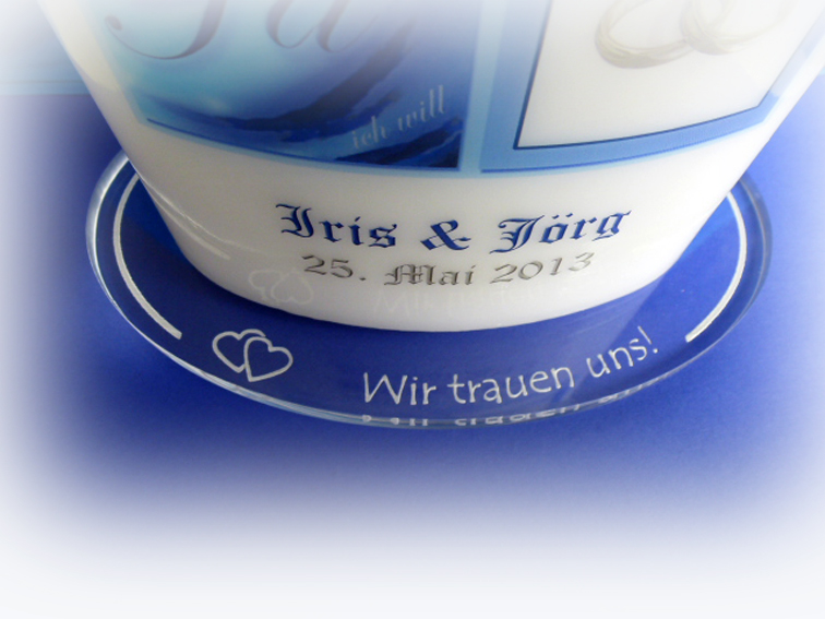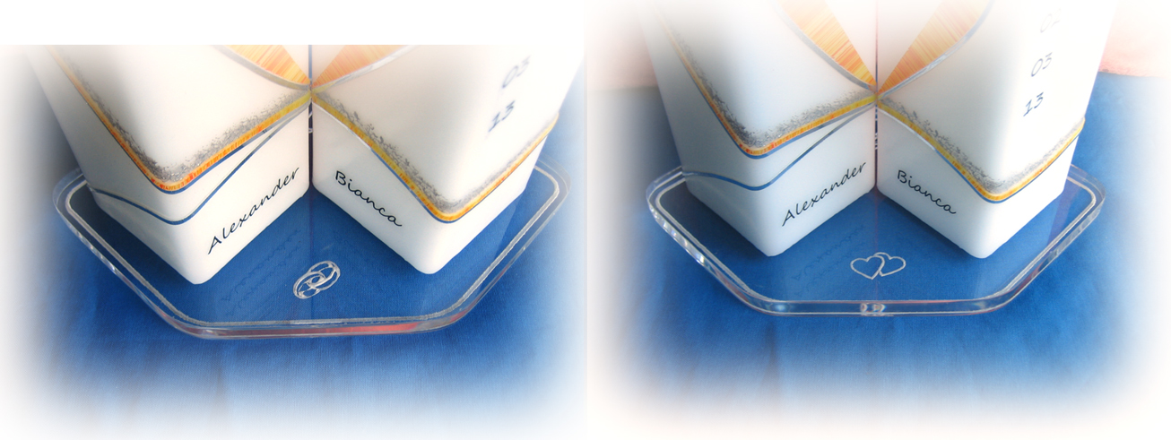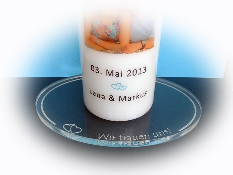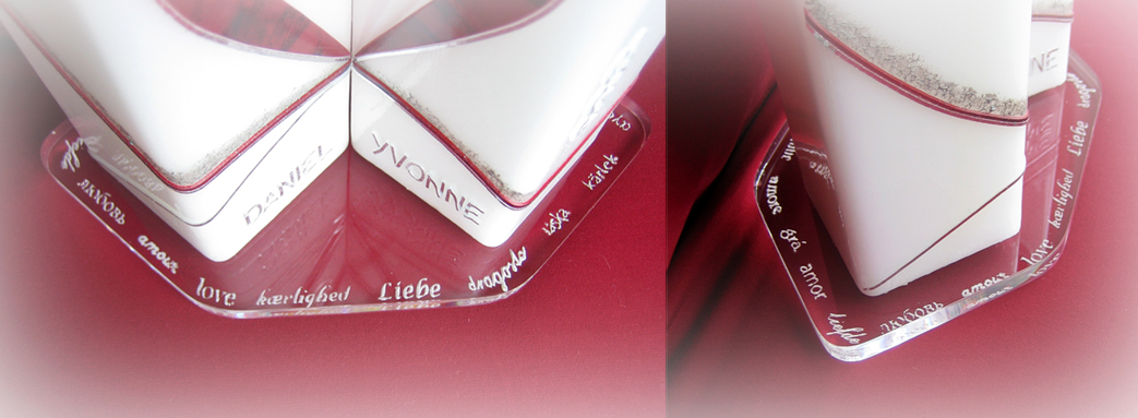 Motiv-Kerzenteller "Herzen und Ringe" ::