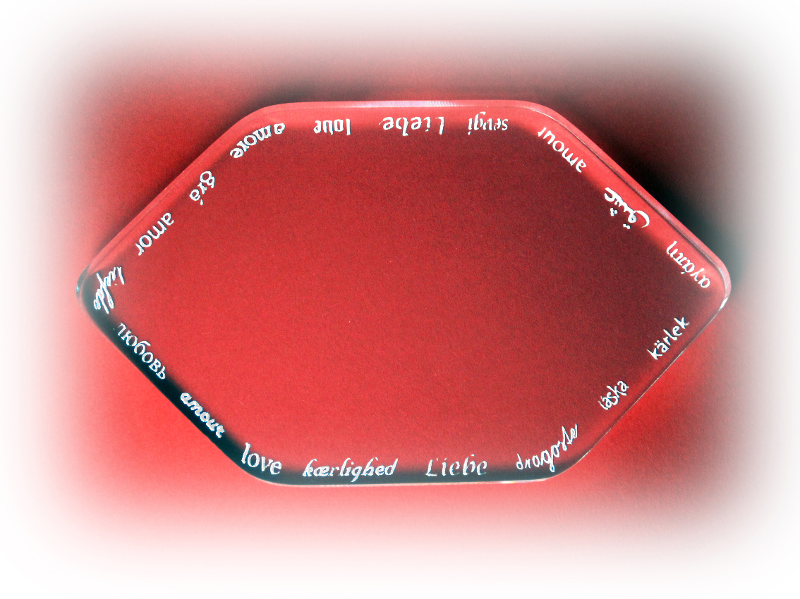 geschliffen und poliert, rundum das Wort LIEBE in vielen