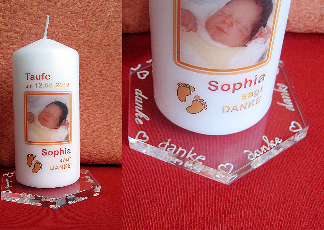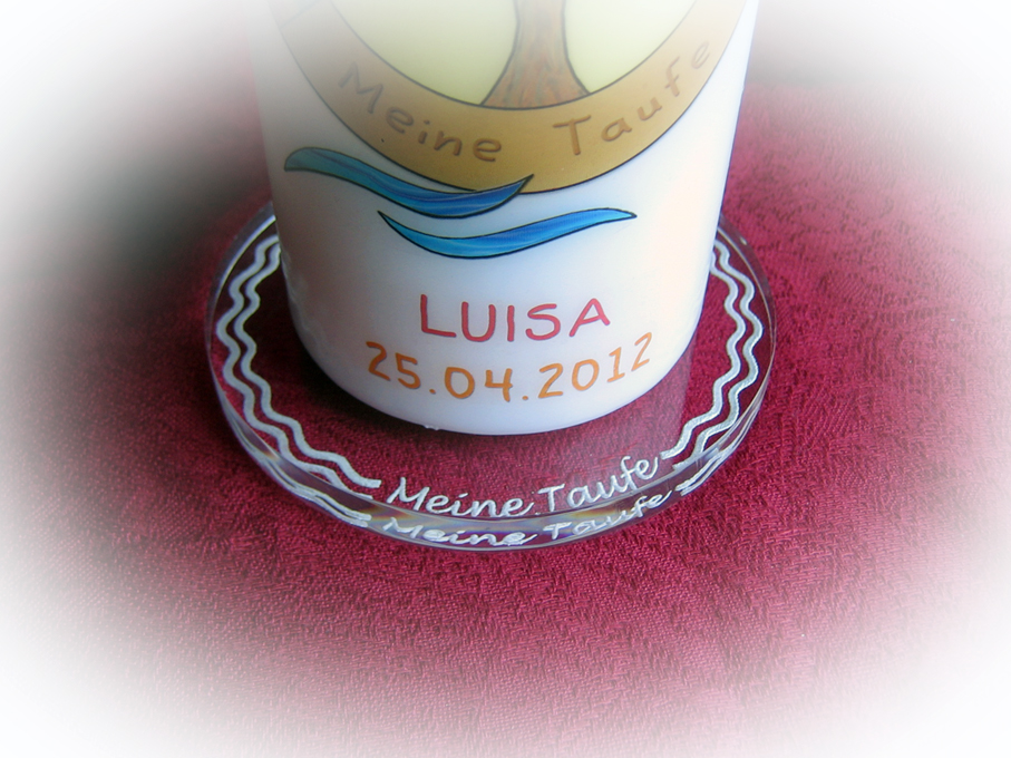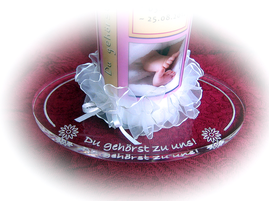Motiv-Kerzenteller "Unsere Taufe" ::