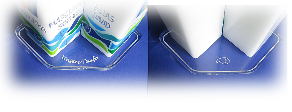 geschliffen und poliert, Schriftzug UNSERE TAUFE und zwei Fische
