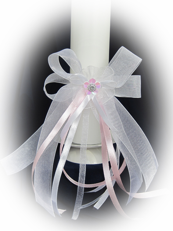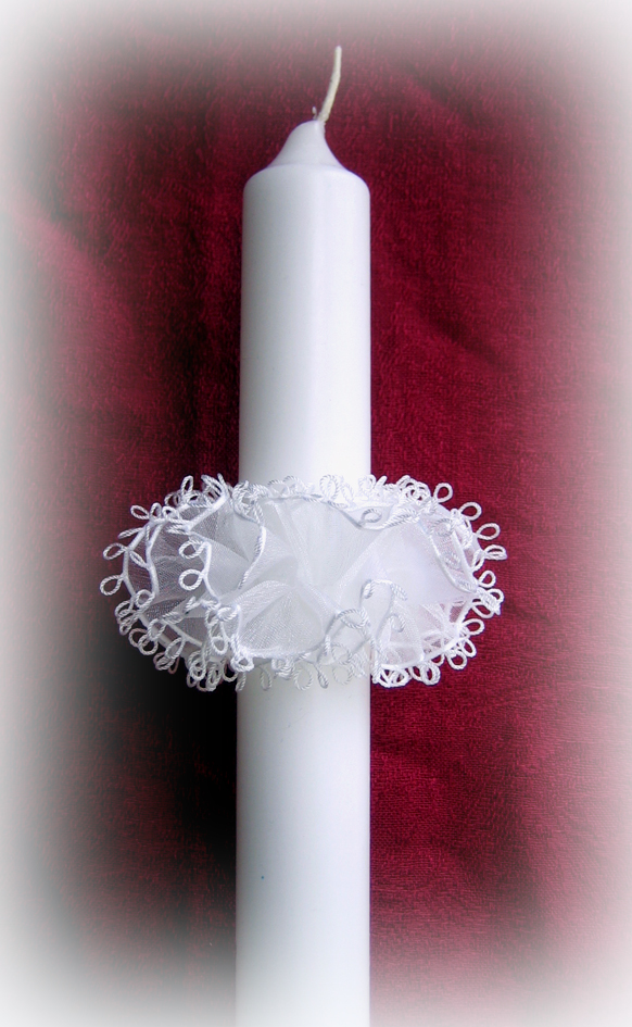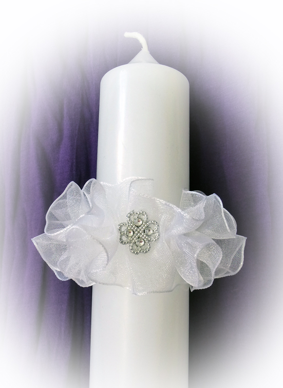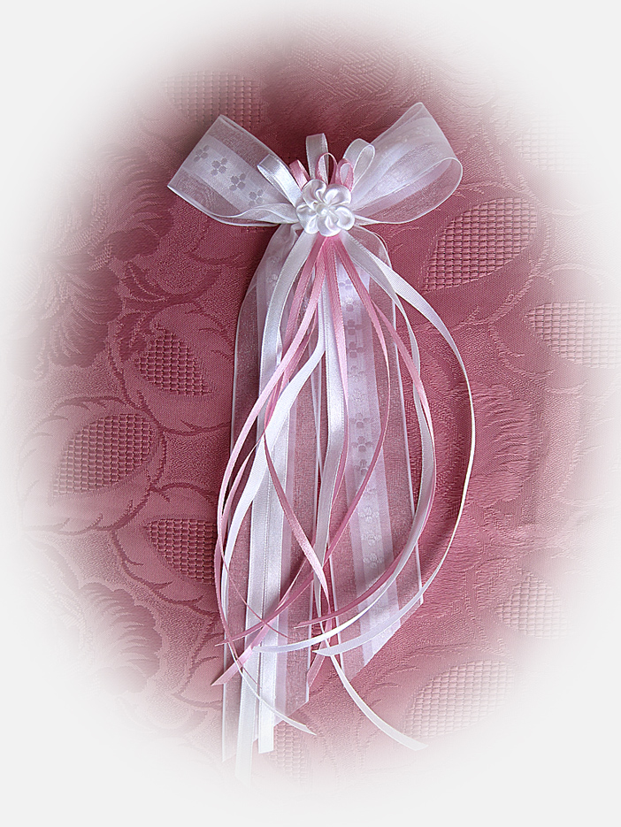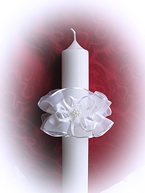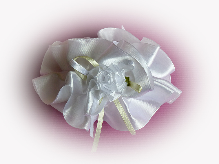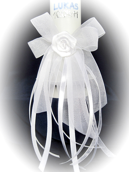 mittig eine weiße Textilrose und mit dabei ein schmaler