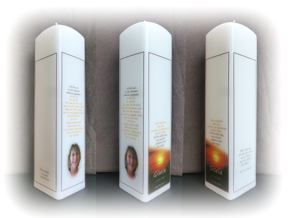 zusammen mit einem Foto des Verstorbenen. Dort kann uns die Trauerkerze